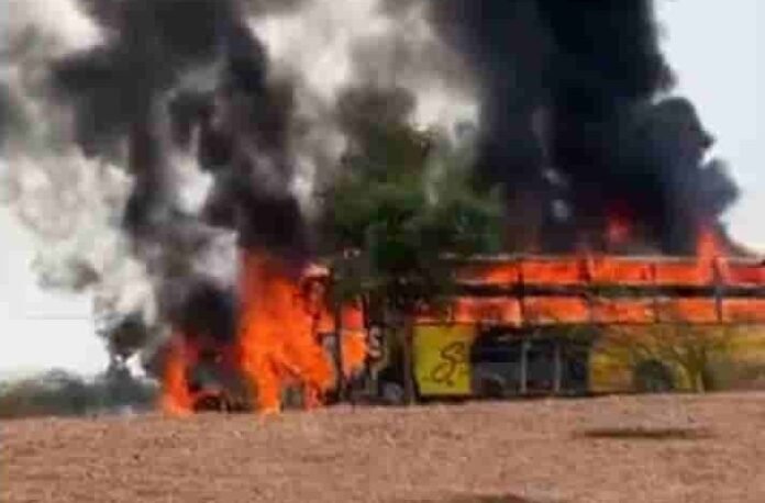 ಇದೇವೇಳೆ, ಬಸ್‌ಗೂ ಬೆಂಕಿ ತಗುಲಿದ್ದು, ಹಲವು ಪ್ರಯಾಣಿಕರು ಗಂಭೀರವಾಗಿ ಗಾಯಗೊಂಡಿದ್ದಾರೆ. ಅಪಘಾತದ ನಂತರ ಸ್ಥಳದಲ್ಲಿ ಭೀತಿ ವಾತಾವರಣ ನಿರ್ಮಾಣವಾಗಿದ್ದು, ಪ್ರಯಾಣಿಕರು ಆತಂಕಕ್ಕೊಳಗಾಗಿದ್ದರು.